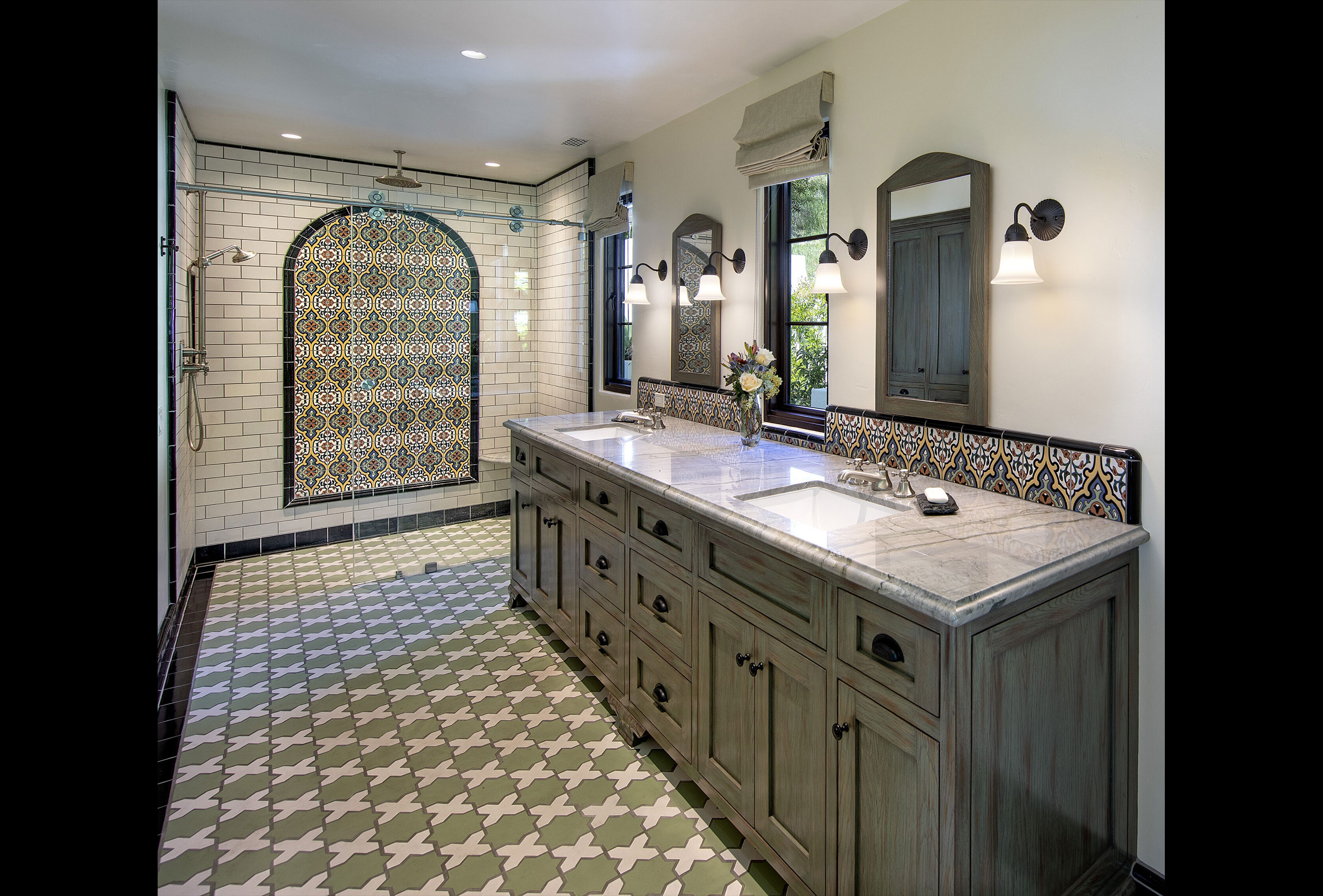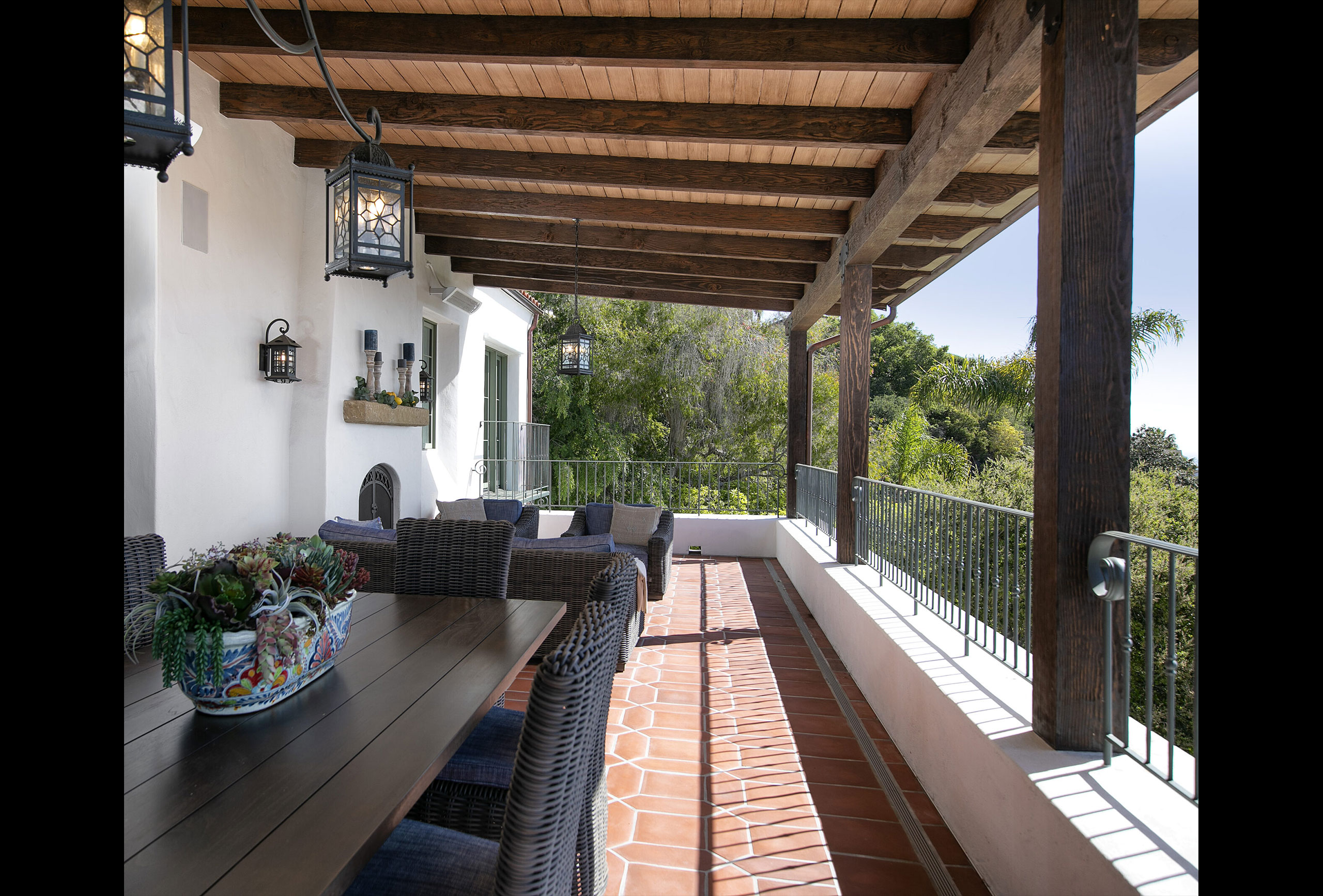 Casa Roble was a dramatic transformation of a dated 1980s contemporary home into a Spanish Colonial residence. While the original home had a looming, almost overbearing presence, the new design far better compliments its Riviera hillside setting. The living spaces that used to overheat on sunny days are now comfortable, inviting spaces. The harsh, sun-baked terrace has been replaced with a covered outdoor living porch from which to enjoy the sweeping views or a casual gathering around the fireplace. All of this was accomplished through a careful process of architectural surgery that only added 64 sf to the existing house.